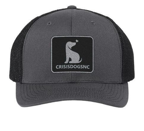 Support a good cause and look stylish with our Crisis Dogs NC patch hats! The black leatherette engraves to silver.