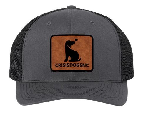 Support a good cause and look stylish with our Crisis Dogs NC patch hats! The brown leatherette engraves black.