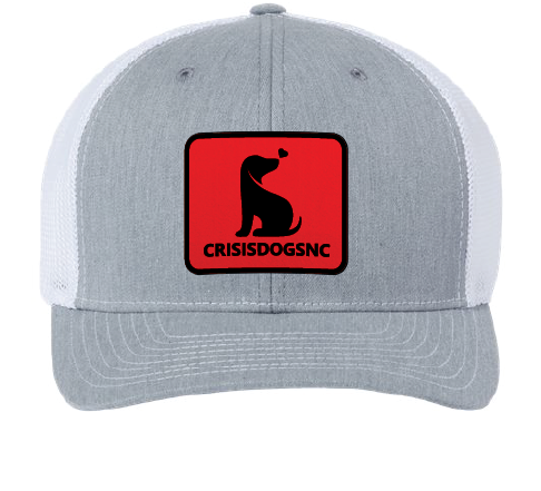Crisis Dogs NC Trucker Patch Hat (Gray/White hat, Red/Black Patch)