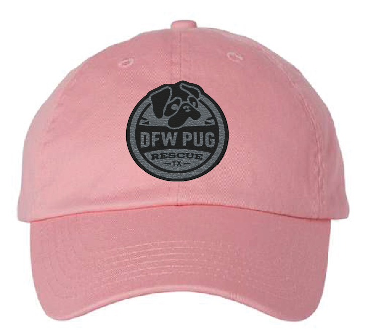 DFW Pug Rescue Dad Patch Hat (Pink Hat, Black and Silver Patch)