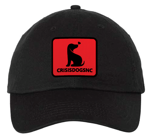 Support a good cause and look stylish with our Crisis Dogs NC patch hats! The red leatherette patch engraves to black.