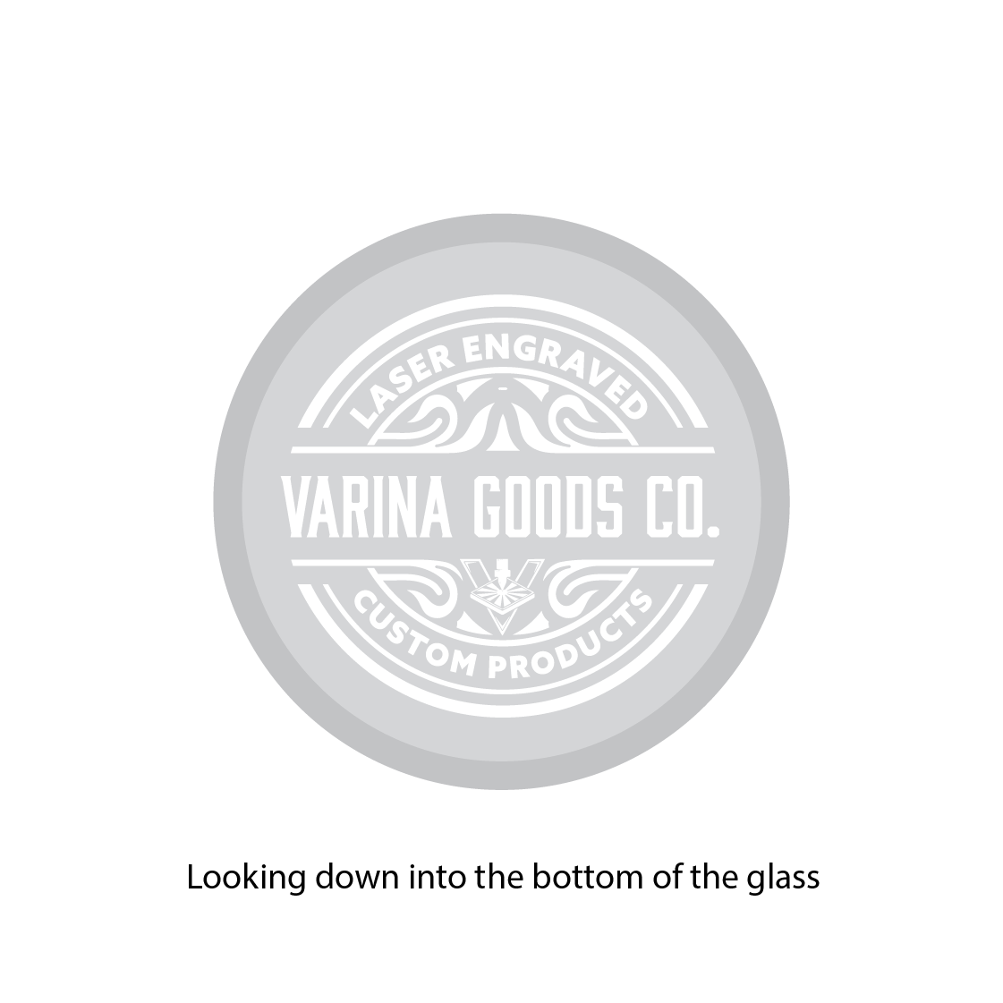 - If bottom etching is chosen, the logo is etched in reverse onto the bottom of the glass, so it reads correctly when drinking out of the glass